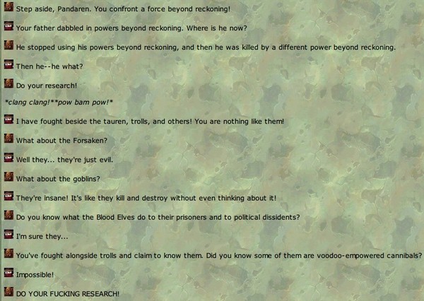 祝:我和牛头人巨魔还有其他种族打过交道!你不配做他们的酋长!