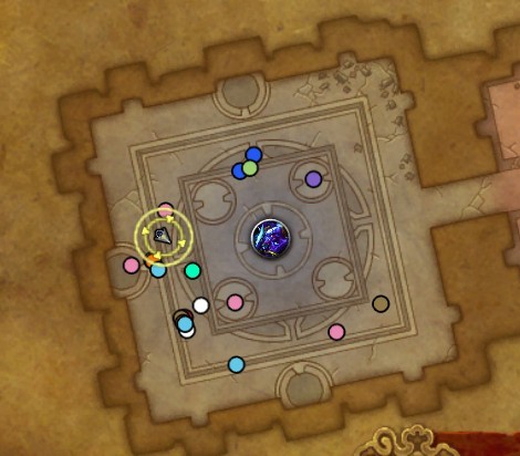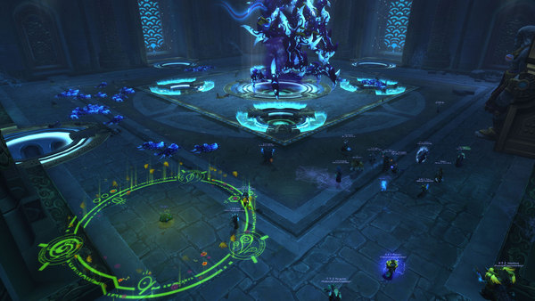 起手正常爆发,我们团是起手嗜血打一波的,所有人站在示意图9点钟位置,坦克在3点钟位置,小怪出来后团队集体移动躲避小怪爆炸,然后a小怪,这时候又会点名7个人泰坦之赐,所有人再次到9点钟位置集合据说泰坦之赐那7个人一直站在一起可无限刷新泰坦之力的buff,泰坦之赐20秒+泰坦之力的 15秒,可以持续35秒的泰坦之力buff...吃到buff,这时候牢笼差不多出了,再按照团队分配去踩牢笼,每个牢笼3个锁,总有一个锁靠近boss 可让近战一边输出boss一边踩,救完**怪出来,如果有分配dk死握大怪,请第一时间站好位置拉大怪,差不多10秒后就是boss的38w aoe,可以把魔法罩留到每轮aoe再开。