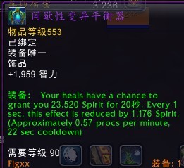 这个饰品触发之后是一个拥有20层的BUFF,提高精神23520(1176*20)。