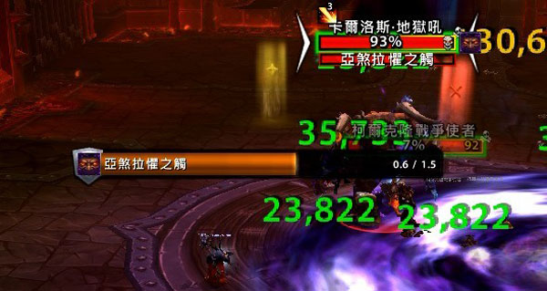 亚煞极之触:加尔鲁什用亚煞极之触折磨玩家,被触碰的玩家会试图传播亚煞极之触,当玩家的生命值降至50%时,亚煞极之触会被移除。