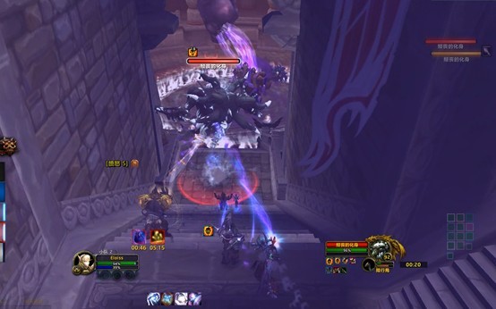 这个技能没有强化的时候,只需要远离boss,开启减伤刷血就行了,当这个技能被强化以后就有点麻烦了,人群要分散,注意躲脚下黑圈,被砸中就是必死,生成的小怪坦克尽量拉住风筝并且给予最大的减速,同时aoe职业暴力aoe小怪,在小怪即将死亡的时候利用元素萨的弹将所有小怪弹开并且将他们尽量分散,这个时候一定要有术士70%的减速,避免他们移动过快又聚在一起,并且尽量多打掉一些小怪,之后慢慢处理剩余的。