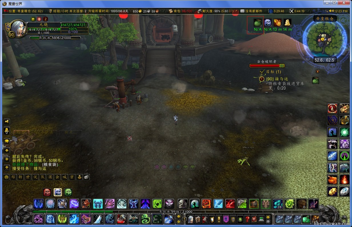 来到粮仓,使用任务道具,获得状态“收集谷物”,然后去接住小怪从楼上扔下来的麻袋