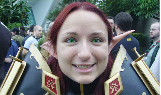 那几天我基本都穿着COS服和The Guild的Clara在外面摆pose拍照。3年前那次BlizzCon上有很多好东西,不过我还是主要以cos为主。其间还接受了几次采访;那时的事还让我记忆犹新。绿眼睛长耳朵的精灵装扮立刻就引爆全场。