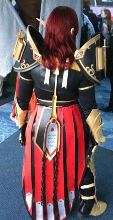 那个血精灵道具服做得我很开心。我雇了一家中国Cosplay工作室做这一套服装,大约花了我900-1000美元。唯一让我失望的是我没有审判套的背部图样,结果他们后面做的效果和我设想里的差了好多。不过总体来说,这确实是一套很棒的装扮。