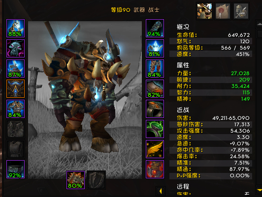 打了很多次,在 566这个装等按照horsespace的手法,基本1Y木桩在24W左右徘回,怒气感觉非常吃紧,如果巨人DEBUFF一断,怒气妥妥的见底,只能发呆,等待下次巨人的触发,巨人的覆盖率在70%左右。