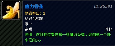 香蕉丢在地上效果类似于陷阱,无视敌我判定(想害自己人尽管丢),踩了即会被击倒(类似于昏迷,大约1秒多无法行动),无视大多数免疫效果,开着无敌也会生效。团队副本可用,对于怪物无效。如果直接往站定不动的玩家脚下丢,丢到立即滑倒并终止一切动作。