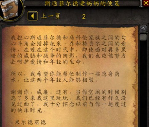 3、以米莱德对两大家族之间的作风和对威廉的了解,她似乎揣摩到这次的苦恋重提乃是出自威廉之手,而且她已经得悉威廉的用意,所以在便签的结尾才会写下这么看似客气场面、却又似带真意的话:“……还有,当你空闲的时候别忘了多来我这里玩玩,我们已经有好久没见过面了,我十分怀念以前与你一起度过的快乐时光。”末尾的署名,似乎还是威廉熟悉的她的闺名:米莱德丽德。