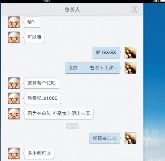 我自以为聪明的要求先G了,他说可以,但是要一张一张交易。我以为我也担心我是骗子,觉得这样双方比较安全。