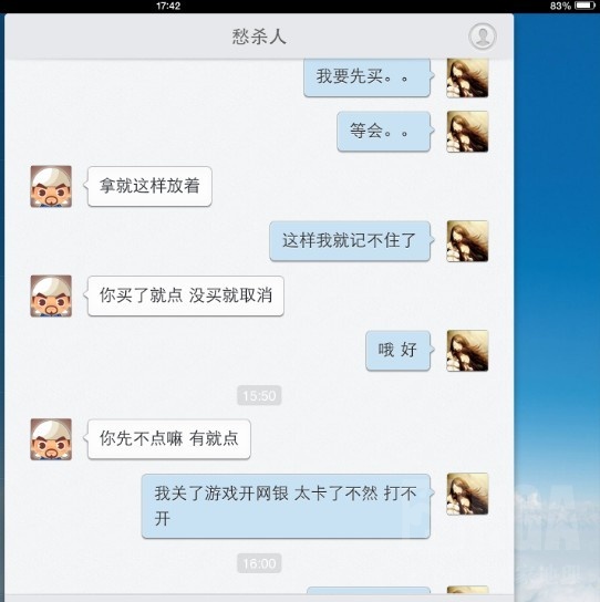 楼主其实那个时候已经不想卖卡了,但是因为他说他要买给她个RMB坐骑,所以就脑补了画面,有个女孩子生日,惊喜收到一个坐骑,应该是满开心的吧,也许,也许他们是wow里的情侣?
