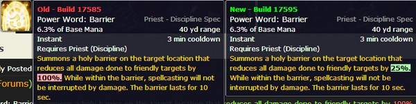真言术:障 在指定区域召唤一道神圣的屏障,使屏障内的友方目标受到的所有伤害降低25%。处于屏障中的角色的施法不会因受到伤害而被打断。屏障持续10秒。