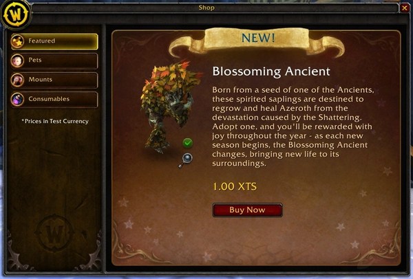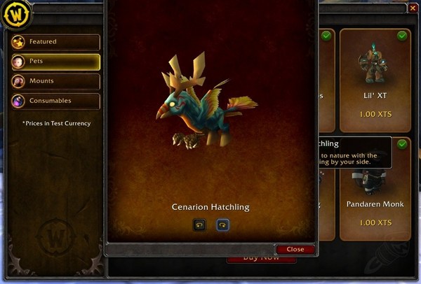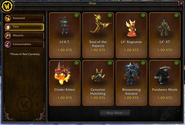 目前在测试服的《魔兽世界》内置商城中加入了坐骑、宠物以及消耗品三个分类以及热销商品标签页。最新推出的坐骑魔法灵龙与新慈善宠物奥特兰克负酒犬尚未添加到新版商城中,但包括小拉格、小拆、火猫、熊猫武僧、装甲血翼蝠、星界战马等其余此前已在暴雪战网商城中上架的坐骑与宠物已经加入。
