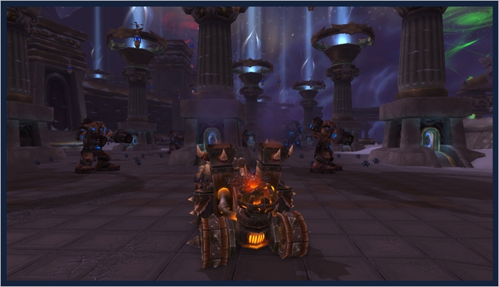 说到光晕系列玩家最感兴趣的恐怕就是游戏里的战斗工具,无论是战斗机普车,星盟坦克,原子炮,战斗飞行器,不管是天上飞的地下跑的玩家都可以驾驶它们参加战斗,这让游戏在战斗武器的选择上变得丰富多彩,爽快和激烈的科幻战争场面,加上XBOX手柄的震动让玩家身临其境。提到这里,不知道广大魔兽玩家们是否联想到奥杜尔一号boss烈焰巨兽的战斗模式,玩家驾驶这部落的工程车(虽然速度很慢,但是威力强大)与泰坦的守护者们展开了激烈的战斗。这是魔兽世界诸多boss战模式中特别的一个,玩家驾驶战争机器进行游戏,将一款MMORPG游戏彻底变成了纯粹的动作游戏,如果不是boss还掉落装备这一事实我们真的很难相信它不是一款动作游戏。暴雪的设计师不单单把动作游戏的表面引入魔兽世界的boss战中,更是将动作游戏的精髓:团队配合,带入到游戏中来,奥杜尔的一号boss需要玩家配合一上一下两个场景同时进行,无论是清理小怪还是推倒柱子,你必须争分夺秒。