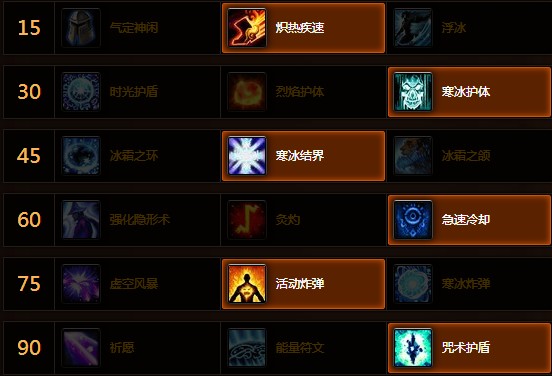 天赋:比较万金油的天赋: 疾跑、冰盾、寒冰结界、极冷、火炸弹、咒术盾。 对术士时候可以把寒冰结界换成冰霜之和,追求一波滚的爆发。