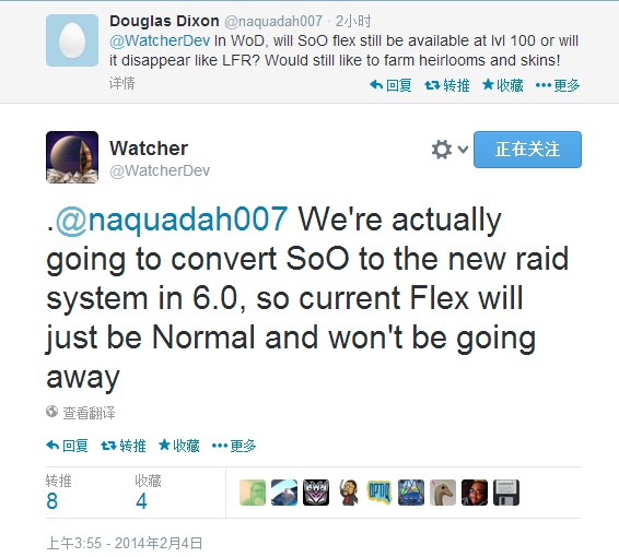 守望者:我们其实打算把6.0版新的团本系统运用到SoO上,这样一来现在的弹性难度就会变成普通难度,不会像随机难度一样有了新资料片后就不见了。