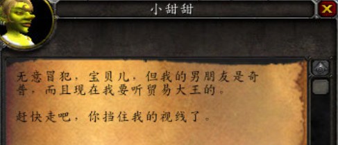 其实,这种状态存在于任何地方、任何种族,只不过地精一族把它发挥到了极致,所以对于这种情况我是早有心理准备的,但是对于你的“背叛”,向奇普这个**才投怀送抱,我当时的确愤恨不已,请相信那是出于一个男人应有的尊严。