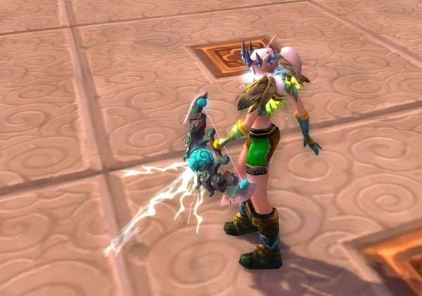 首先我要说明一下,弓的特效并不是跟枪一样,它是你在战斗过程中只有一定几率才能射出特效(反正不是100%,看脸了),不像枪一样打一下就BIU一下 这把弓的特效跟魁麟吼一样,射击时,有一定几率射出闪电效果,我自己截出来的效果是快要消失的,所以颜色比较浅 这个触发几率比较坑,打了好久才会蹦出一道闪电。