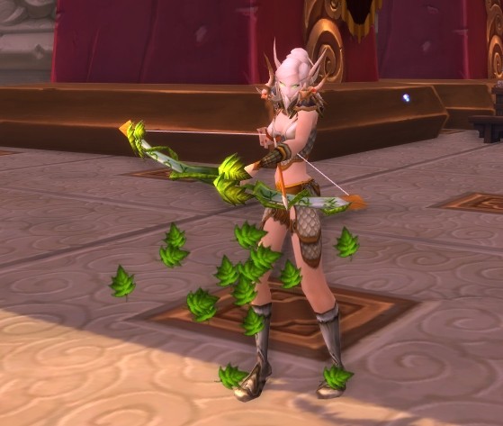 这把弓绝版了……请不要打我。一开始纠结了挺久,这把弓的特效到底是平时就常驻还是射击时才会有, 反复测试后才确定,这把弓在平常只会开花,在射击时有一定几率掉下叶子(几率还挺高的)