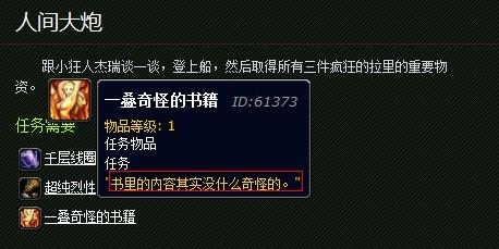 疯狂的拉里在悲伤沼泽是一个绝望的小妖精。他的船被攻击,他需要你找回他最珍贵的商品。他甚至愿意通过一个方便的大炮发射你,把你送过去。 你需要找的一个任务物品叫“一叠奇怪的书”。这个书的图标是一个诱惑的女子,让人无限瞎想,莫非内容是……但是物品的说明上却写着:“书里的内容其实没有什么奇怪的”这是在逗我们吗?