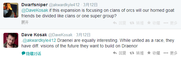 A:德莱尼也同样有趣。他们虽然举族团结一心,但对于要在德拉诺上建设一个什么样的未来各有不同看法。