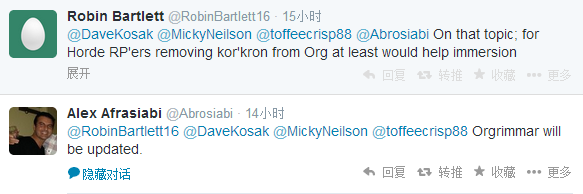 来自魔兽世界创意总监Alex Afrasiabi(弗洛尔)和首席剧情设计师Dave Kosak的推特: