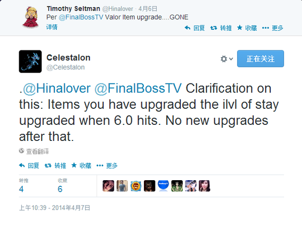 亲爱的Celestalon表示6.0会关闭装备升级系统。