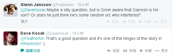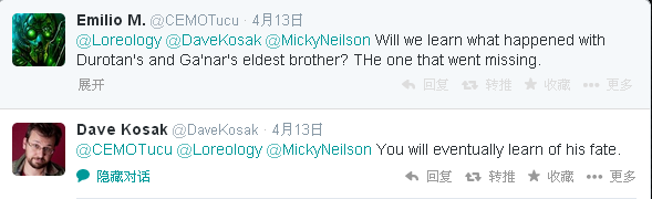 来自魔兽世界首席剧情设计师Dave Kosak的推特: