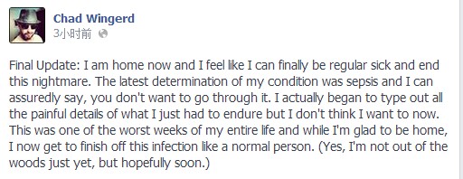 Crithto是暴雪美服社区经理,本名Chad Wingerd,几天前发烧并伴随疼痛、眩晕、发抖,同事Celestalon把他送到了医院急诊,入院时生命体征较低,经过各种检查后确诊为败血症。经治疗现已回家休息。