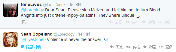 Q:亲爱的Sean。请去扇醒梅森,并告诉他不要把血骑士变成德莱尼式的嬉皮圣骑士。他们是独一无二的。._.