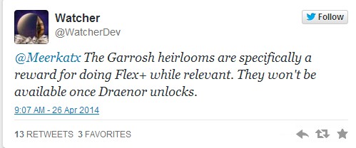 A:守望者(Watcher): 加尔鲁什的传家宝是当前版本打弹性和弹性以上难度的专有奖励。《德拉诺之王》上线后,玩家就无法再获得他的传家宝了。