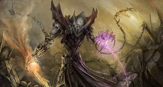 虚空张牙舞爪,被弹性很强的灵魂包裹着,它挣扎似的从漩涡中孵化,在它用力的地方,可以看到尖锐的爪子,球体内部还有两个光源在不停的晃动,那应该是它的眼睛了。亡灵术士转向艾伯伦,映衬着背后的虚空在慢慢成形,对方一副强大的状态在艾伯伦心中油然而生,虚空皮囊周围的蓝紫色气体和干冰一样渐渐的从棺椁上漂下来,艾伯伦不知道该如何是好了,术士又张口说话:这....是我....妻子的墓....,....太潮湿了....,我不想....看到她....腐烂在这里.....她生前...很爱美....”