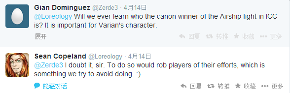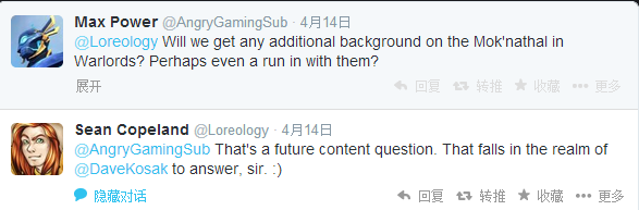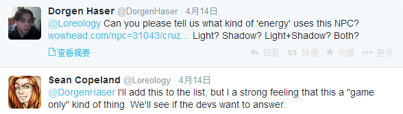 来自魔兽世界首席剧情设计师Dave Kosak和剧情组历史学家Sean Copeland的推特:
