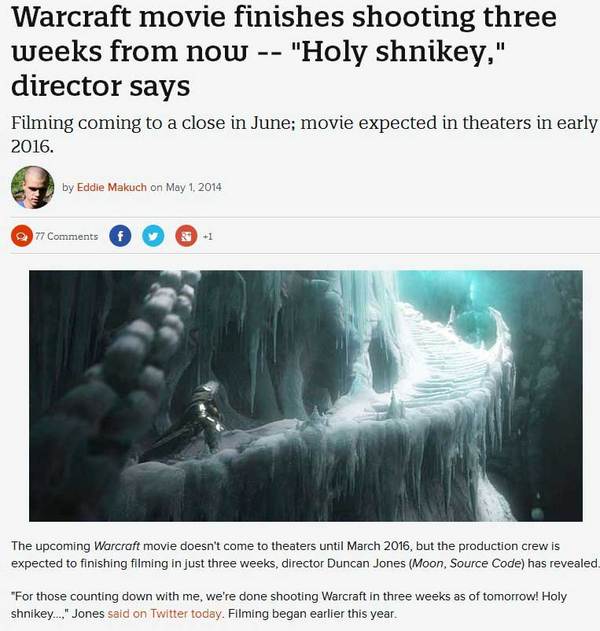 “和我一起期待本片的观众们,从明天开始算的话,3周后,《魔兽争霸》电影就会杀青啦!好激动!”导演邓肯·琼斯在推特如是说。