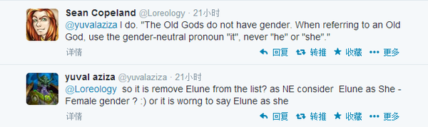 A:"上古之神没有性别,当提到一个上古之神的时候,请使用中性代词"它",而非"他"或者"她"。"