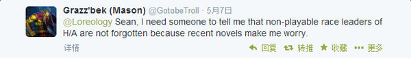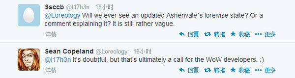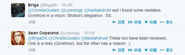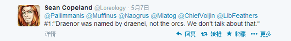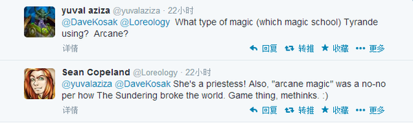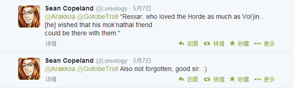 来自魔兽世界首席剧情设计师Dave Kosak和剧情组历史学家Sean Copeland的推特: