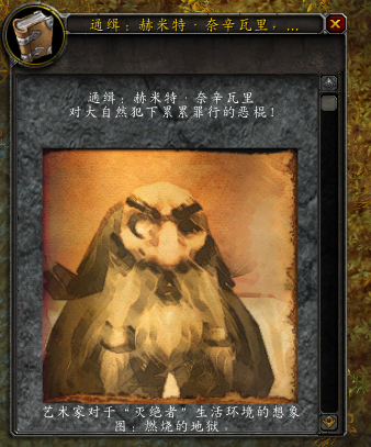 他算不上一个什么大角色,但你不可否认,赫米特·奈辛瓦里是自经典旧世以来,几乎每个版本都有固定登场的角色(只有"重制版"大灾变里没有)。荆棘谷,纳格兰,索拉查,四风谷。魔兽世界里甚至衍生出了一个专门对付偷猎者的仁德会。奈辛瓦里则是他们的头号通缉要犯。试想,等到你穿越新的黑暗之门,来到野蛮原始的德拉诺,却发现这个老猎人早等在这边,跟你说:"嘿,老兄,我知道你忙着对抗钢铁部落,不过如果你能给我打84000只野狼,84000只火鸡,再加120000只麋鹿,我就给你啪啪啪奖励。"呵呵,奈辛瓦里,您老还是歇着吧。