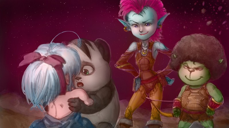 熊爸爸不知道,站在身后的拉莫和皮古露出了不怀好意的笑容,虽然拉莫和皮古承认熊爸爸这儿的伙食很不错,但是对当初被粗暴劫持仍然怀恨在心,现在看到熊爸爸变成了个小胖墩,觉得机会来了;拉莫和皮古决定反水,报复熊猫父子~~~