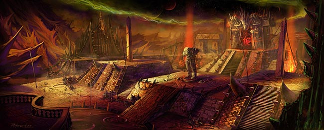 基尔加丹王座的形成也是在这个阶段,基尔加丹王座是地狱火半岛北部的一座火山。这里正是当年兽人和玛诺洛斯订立鲜血契约的地方。古尔丹让兽人们将这座山想象成基尔加丹的王座,想象基尔加丹本人就坐在山头之上,保佑和赐福着德拉诺所有的兽人。近三十年前,古尔丹率领兽人各氏族的战斗部队来到这里,并哄骗他们喝下玛诺洛斯的燃烧之血。战歌氏族的酋长格罗姆.地狱咆哮第一个带头响应。在格罗姆的影响下,其它各氏族纷纷效法。最后,除了获得了警告的霜狼氏族和直觉不对奥格瑞姆.毁灭之锤外,在场的所有兽人都喝下了玛诺洛斯之血,从此开始了部落最为黑暗的时代。仪式完成后,部落大军立即向着德莱尼首都沙塔斯城开去,他们刚离开不远,基尔加丹王座就在他们身后喷发了。从火山口涌出的并非岩浆,而是绿色的恶魔汁液。部落大军将这一现象视作视为基尔加丹的信号,象征着这场进攻必然的胜利。事实也跟他们预期的一样,沙塔斯城在他们的利斧下化为了废墟。