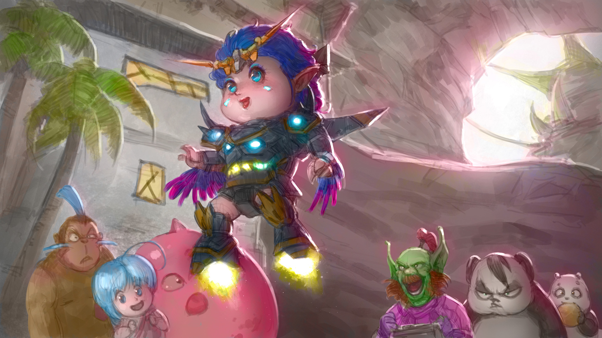 地精克劳德一心想把飞天魔像小型化,可用于单兵的特殊任务,前几次的测试都不理想,这次就用飞行系的毛毛来试试,当然是瞒着熊爸爸进行的,不过,熊爸爸还是知道了,碍于后面远征诺森德的装备都要地精提供,熊爸爸也不好发作。