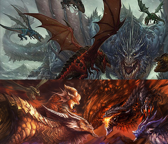 泰坦们重整了艾泽拉斯星球的混乱之后,就从上古原龙迦拉克隆为原型创造出五色巨龙,分别赐给红龙女王阿莱克丝塔萨掌管生命的力量、蓝龙王玛里苟斯掌管奥术魔法的力量、绿龙女王伊瑟拉掌管梦境的力量、青铜龙王诺兹多姆掌管时间的力量、黑龙王奈萨里奥守护大地的力量。