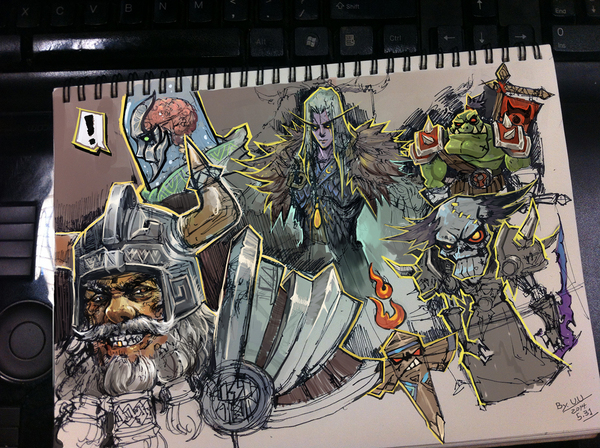 昨天早上上班开周会,自己躲在角落里乱涂乱画,不过还是画了点WOW相关的~以后有时间就多画画~~嘿嘿。希望大家喜欢这样的~