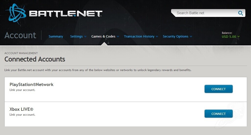 战网页面出现了一项新功能,允许玩家把战网帐号与Xbox LIVE或者PlayStation Network帐号进行连接,并获得“传奇奖励和增益”,但目前还没宣布具体细节。出于众所周知的原因,大陆战网暂时没有这项功能。