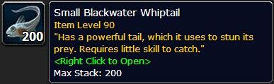 魔兽世界6.0资料片中,过去始终是烹饪基本材料之一的鱼类已经不会在新版本中用于烹饪了,取而代之的是鱼肉。钓到的鱼现在类似包裹,可以打开,按鱼的体型可以从中拾取鱼肉。例如黑水鞭尾鱼,我们可以钓到下面这几种:
