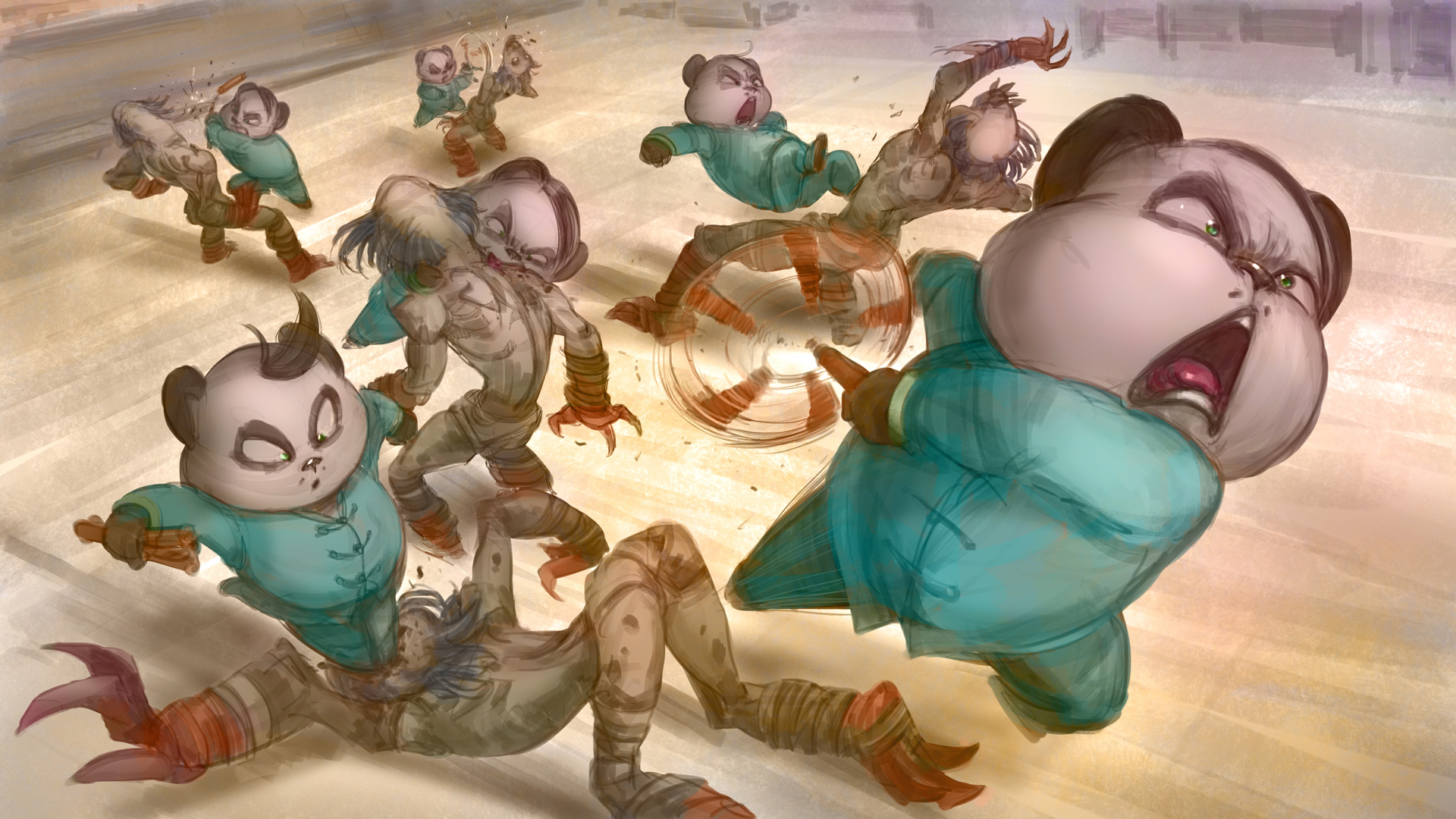 熊爸爸以迅雷不及掩耳的速度闪击这些行动迟缓的食尸鬼,用“踢!打!撕!拧!咬!叉!扒"等动作将其一一击倒,目标直取牛头死亡骑士!