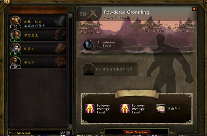 左面菜单代表玩家招募到的追随者,追随者现今也只能通过霜火岭一系列任务来招募,笔者的四个追随者全都是完成相应救援任务后,追随者自动加入的。追着等级框体显示为绿色的代表他对于当下任务要比白色等级框体的追随者更适合完成。要想选择钟意的追随者完成相应任务只需将其用鼠标拖动到右侧对应的圆圈内即可。