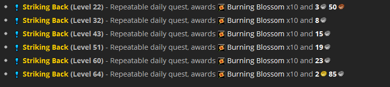继续扔火炬(部落)、继续扔火炬(联盟) - 这是一个日常任务,每次奖励[燃烧之花]x5