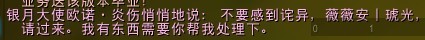 银月城高贵的游侠三姐妹的结局都不是美好的,而对于希尔王纳斯而言,他的悲惨已经不是这个人生的故事了。当她成为被遗忘者的时候,她就被人们忘却,她也选择了忘记人们,忘记曾经的一切。即使她现在仍旧获得了荣耀,获得了高贵的地位,但是,这份荣耀和以前不一样。如果没有这个任务,我们也不会知道,现在的女王还会流露出那对回忆深深怀念的情感,我们一直以为女王已经抛弃了她生前的一切,在痛苦和孤独中保持这高贵冷艳的姿态。然后这份情感更使得希尔瓦娜斯,这个悲剧的魔兽英雄,越发让人感到悲惨。