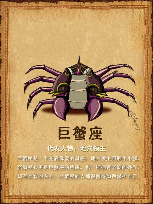 温柔的巨蟹座喜欢玩团队中最需要的角色来实现自身的价值以及寻找自己所需要的自信心,很难想象贤妻良母婆婆妈妈型的巨蟹站在前排打打杀杀,在魔兽世界中巨蟹座很喜欢只用远程职业,比起DPS治疗更受他们的青睐,因为如果发生团灭DPS受到的压力比起治疗和坦克来讲要大得多,胆小的巨蟹座通过治疗过关寻找自信心,然后在暗地里仔细研究DPS的打法,以备团队里缺少DPS可以顶替一下。所以能远程DPS能治疗的萨满、小德、牧师成了巨蟹的首选人物。