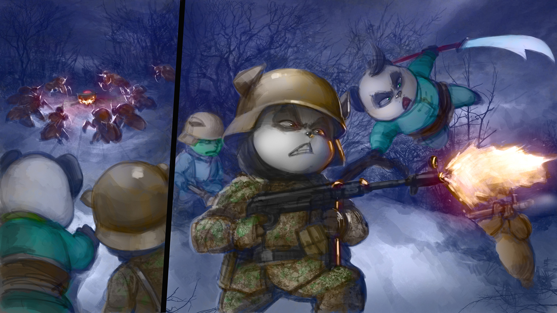 熊爸爸一队并没有真的逃离,他们发现了软泥怪味精被抓走了,熊猫父子就尾随那些地穴领主进了树林,他们看到地穴领主又燃起火堆,把味精和锅一起煮着,虫族们好像很喜欢味精散发出来的甜腻水果芳香,味精就这样一直被煮着~~~~~