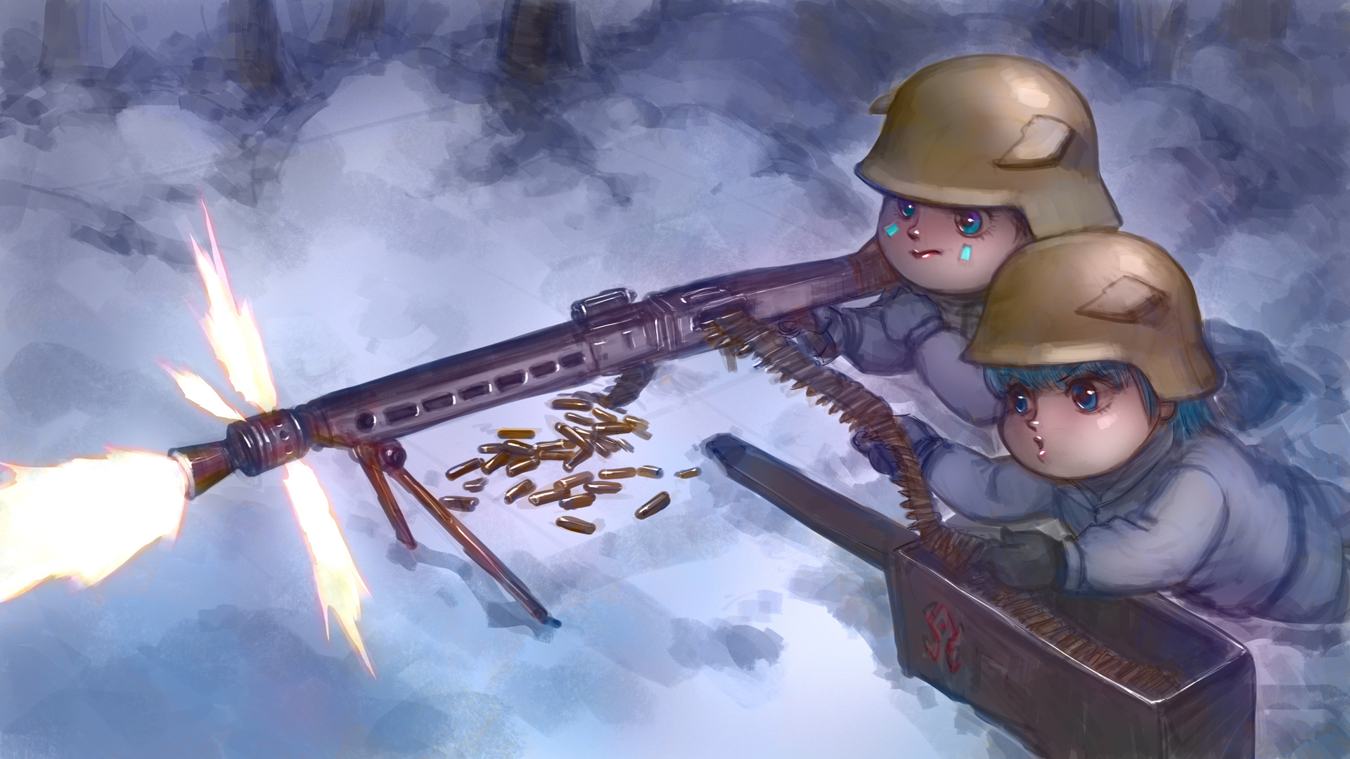 **无法开进树林,毛毛和莎莎就把上面的机枪拿下来,作为支援火力。