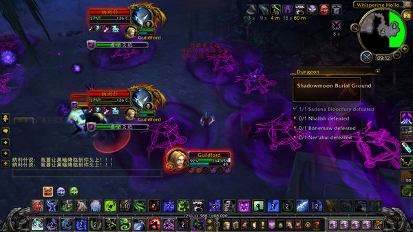 位面转移和虚空漩涡是组合技,BOSS会用位面转移随机传送到一名玩家身边,随后开始引导虚空漩涡,将玩家拉向漩涡并造成暗影伤害。由于是单刷,因此BOSS基本上会原地传送,漩涡开始引导时死步跑开。漩涡即将结束的时候跑回BOSS身边,这和下一个技能有关系。